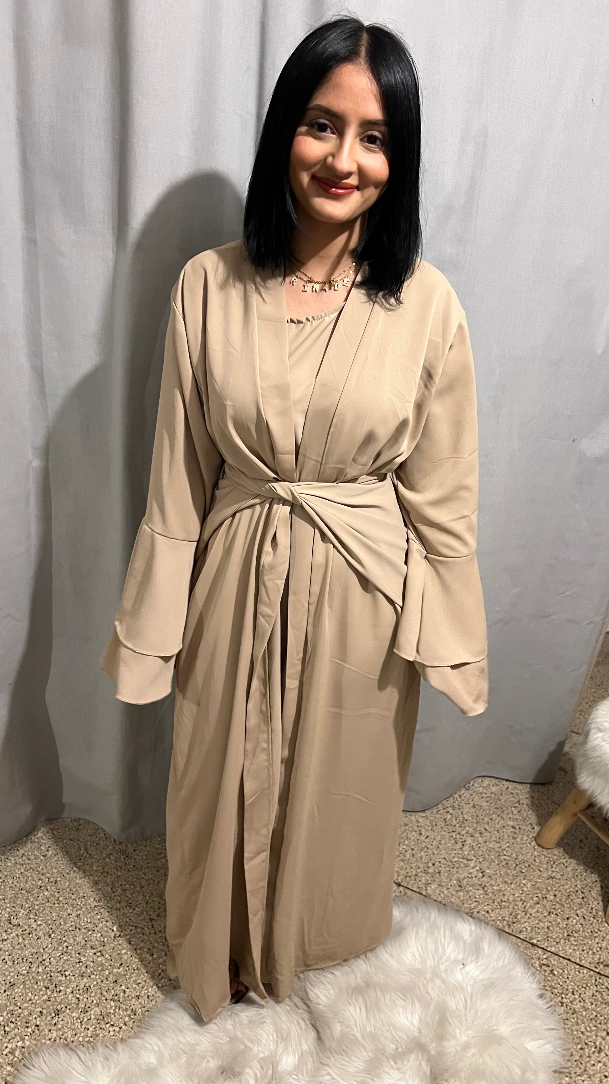 Abaya 3 pièce la robe à manche , kimono a paillette sur les manches et le foulard