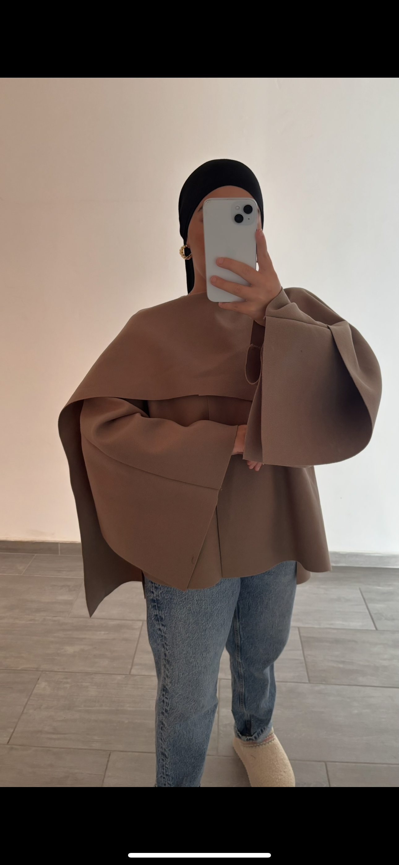 Adoptez la couleur taupe tendance avec cette cape courte élégante ! Une teinte raffinée qui apporte du style à toutes vos tenues.