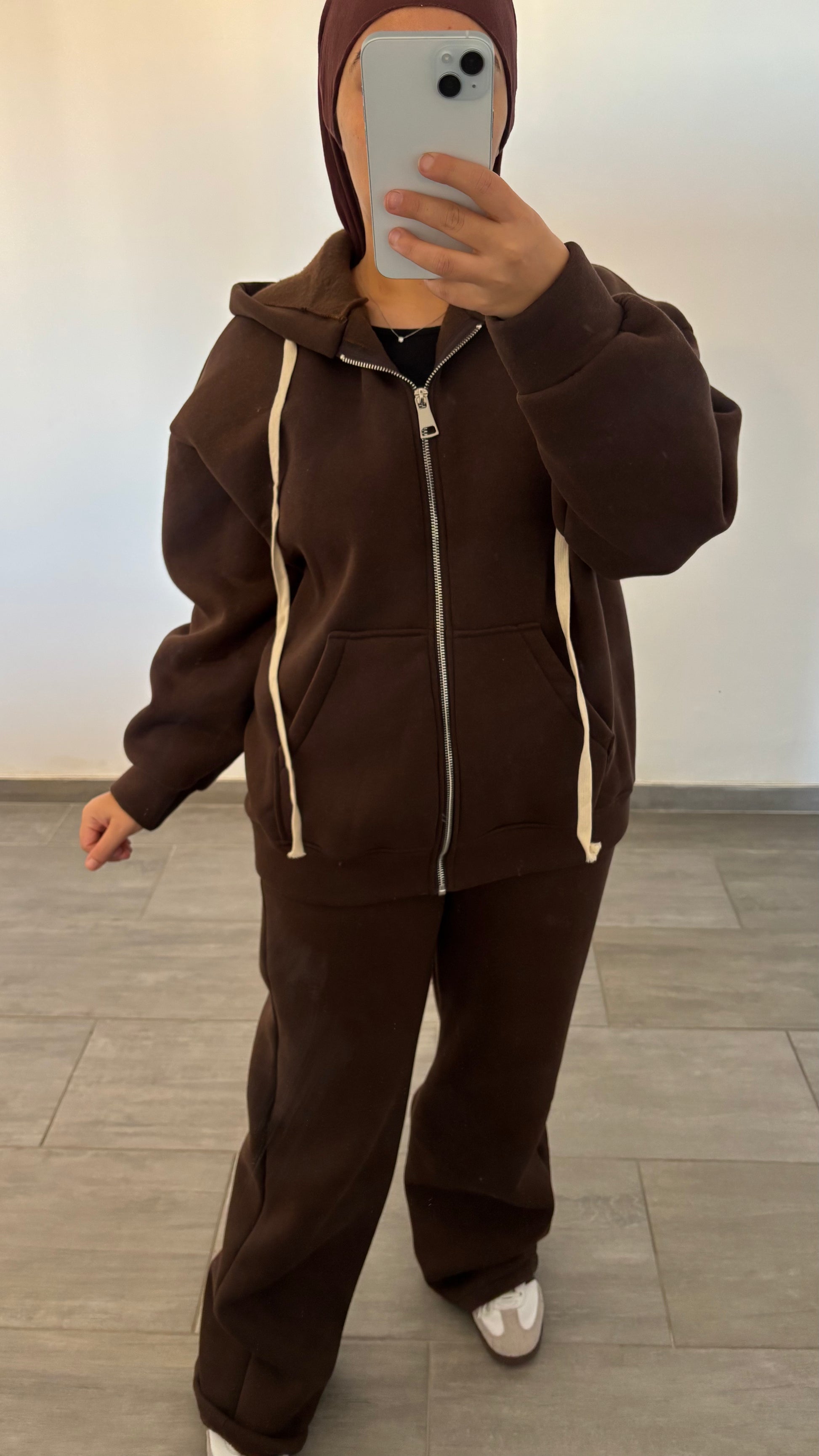 Adoptez la couleur star de la saison avec ce magnifique survêtement chocolat ! Confort, style et douceur réunis dans un ensemble parfait.
